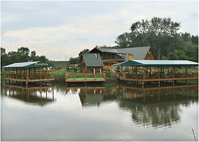 На території комплексу розташовані котеджі, невеликий готель та рибальський будинок. Відповідно, є можливість порибалити, а також спробувати себе у кінному спорті і навіть проїхатися на кареті.