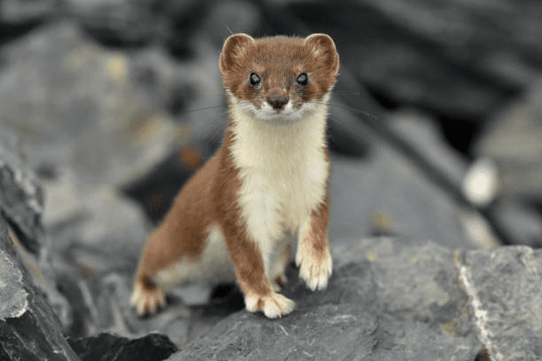 Горностай — це невелика тварина-представник родини куницевих. Вона схожа на ласку (але та менша, має коротший хвіст і дещо інше хутро). В’юнке і спритне тіло горностая має довжину до 30 сантиметрів, хвіст становить сантиметрів 7-11. Вага тварин — близько 200 грамів. Колір хутра горностая різниться, залежно від пори року. У теплу пору “шуба” має коричнево-кремові барви, а зимою — білу із чорним кінчиком хвоста.